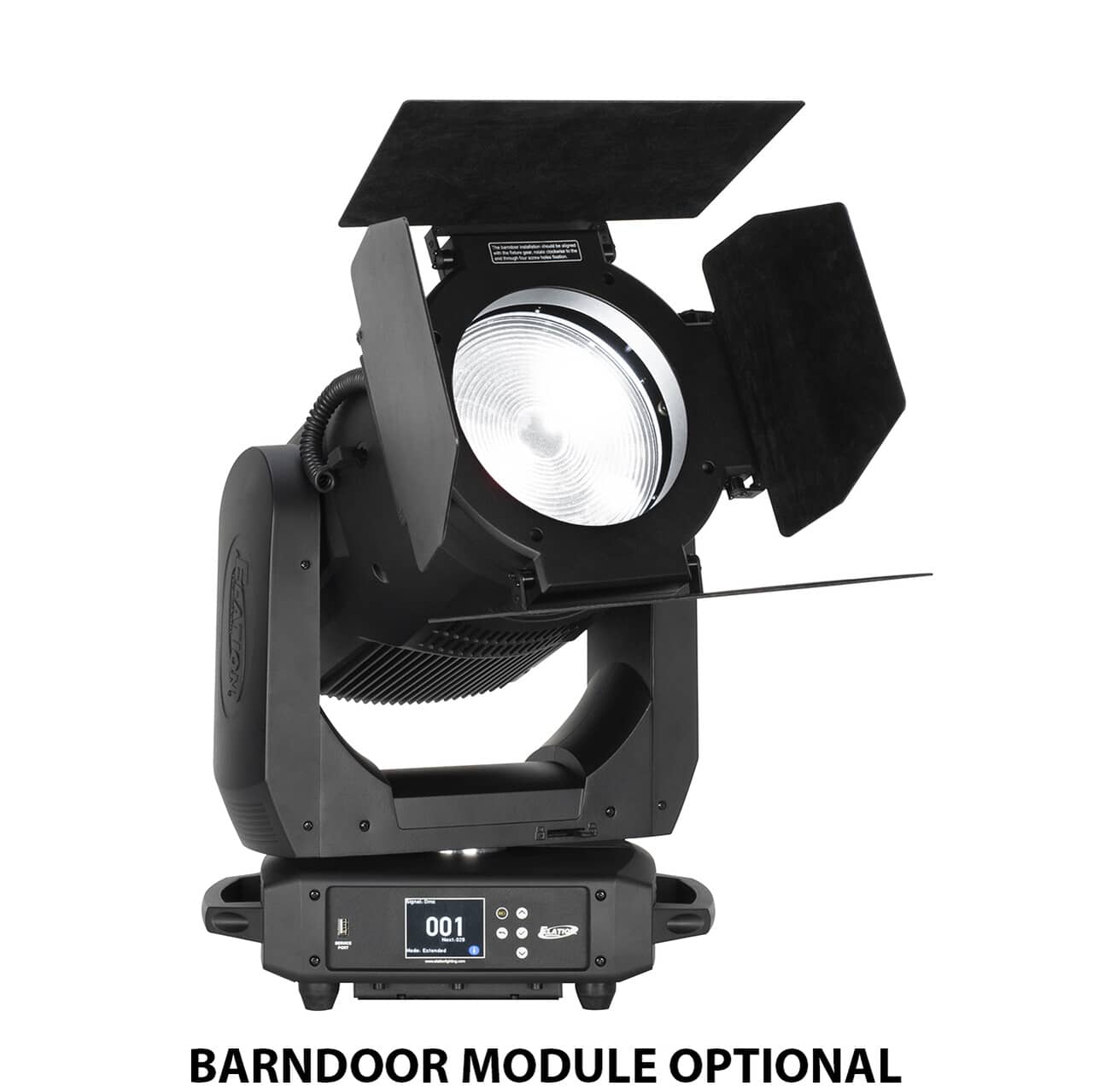 Die 500W RGBMA-LED-Engine mit durchstimmbarem Weißlicht erzeugt ein wunderschön diffuses, gesättigtes und pastellfarbenes Licht mit einer Leistungsstärke von rund 17.000 Lumen. Der CRI liegt über 92. Er ist zudem bemerkenswert leise und kann in jeder lärmsensiblen Umgebung eingesetzt werden. Der optionale indexierbare Beamshaper und ein vollautomatisches Barndoorsystem sind für eine zusätzliche Kontrolle des Strahls aus der Ferne erhältlich.