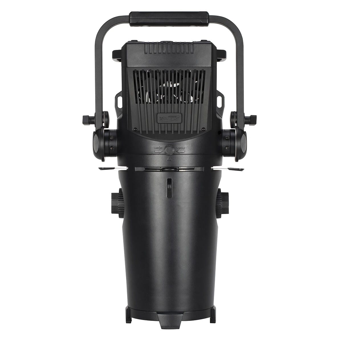 Das Gerät bietet eine variable Weißlicht- und Vollspektrum-Performance mit einer <92 CRI LED-Engine, die ein 305W RGBMA-LED-Array nutzt, wobei die Lichtleistung über 10.000 Lumen beträgt. Er verfügt über einen indexierbaren Gobo Slot und wird mit 10 hochauflösenden Glasgobos geliefert. Ein manuelles Blackout-Framingsystem ist im Lieferumfang enthalten und eine Fresnel-Linse ist als optionales Zubehör erhältlich.