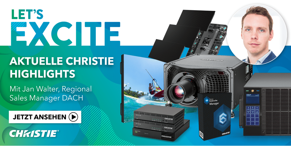 Jan Walter, Christies Regional Manager DACH, beschreibt kurz und knapp die Merkmale verschiedener Technologien. Er antwortet auf die Frage, was den Unterschied von RGB-Lasertechnologie im Vergleich zu anderen Projektionssystemen ausmacht und worin die Vorteile der einzelnen RGB-Lasermodelle liegen. Verschiedene Modelle – das ist auch das Stichwort beim Thema LCD-Displays: Christie bietet je nach Applikation verschiedene Größen, Auflösungen und Anschlüsse, die den Anforderungen der jeweiligen Kunden und Projekte entsprechen.