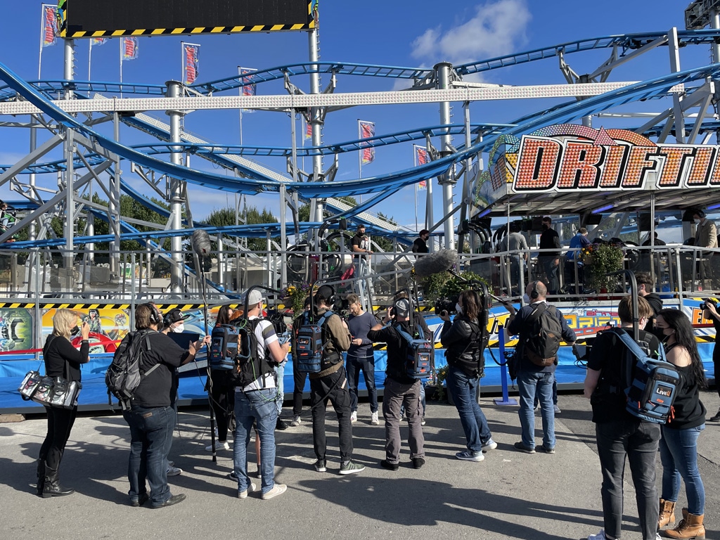 Die Rocket Beans haben keine Mühen gescheut und die Gamevasion Championships mit einem Großaufgebot an Videotechnik begleitet. So wurden unter anderem Action Cams, Drohnen sowie Smartphone-Kameras genutzt, um das Gaming-Event mit all seiner Dynamik einzufangen und Fans hautnah teilhaben zu lassen. Für die drahtlose Übertragung waren sowohl LU600 als auch die neuesten LU800 Sendeeinheiten von LiveU im Einsatz. Sie streamten die Live-Signale von anspruchsvollen Drehorten wie etwa von einer Achterbahn, einer Rooftop-Bar auf der 26. Etage eines Hotels oder einer Laser-Tag-Halle. Zudem hatte man den Tourbus, der die Teilnehmer:innen von einer Gaming-Location zur nächsten brachte, mit mehreren Kameras und LiveU-Technik ausgestattet und so in ein mobiles Sendestudio verwandelt. Dank der Multi-Cam-Funktion der LU800 konnten mit nur einem Gerät vier parallele Live-Feeds aus dem fahrenden Bus übertragen werden, während die Gamer:innen an Bord weitere Aufgaben lösten. Die verschiedenen Programm-Elemente bildeten zusammen eine dreistündige, unterbrechungsfreie Live-Show.