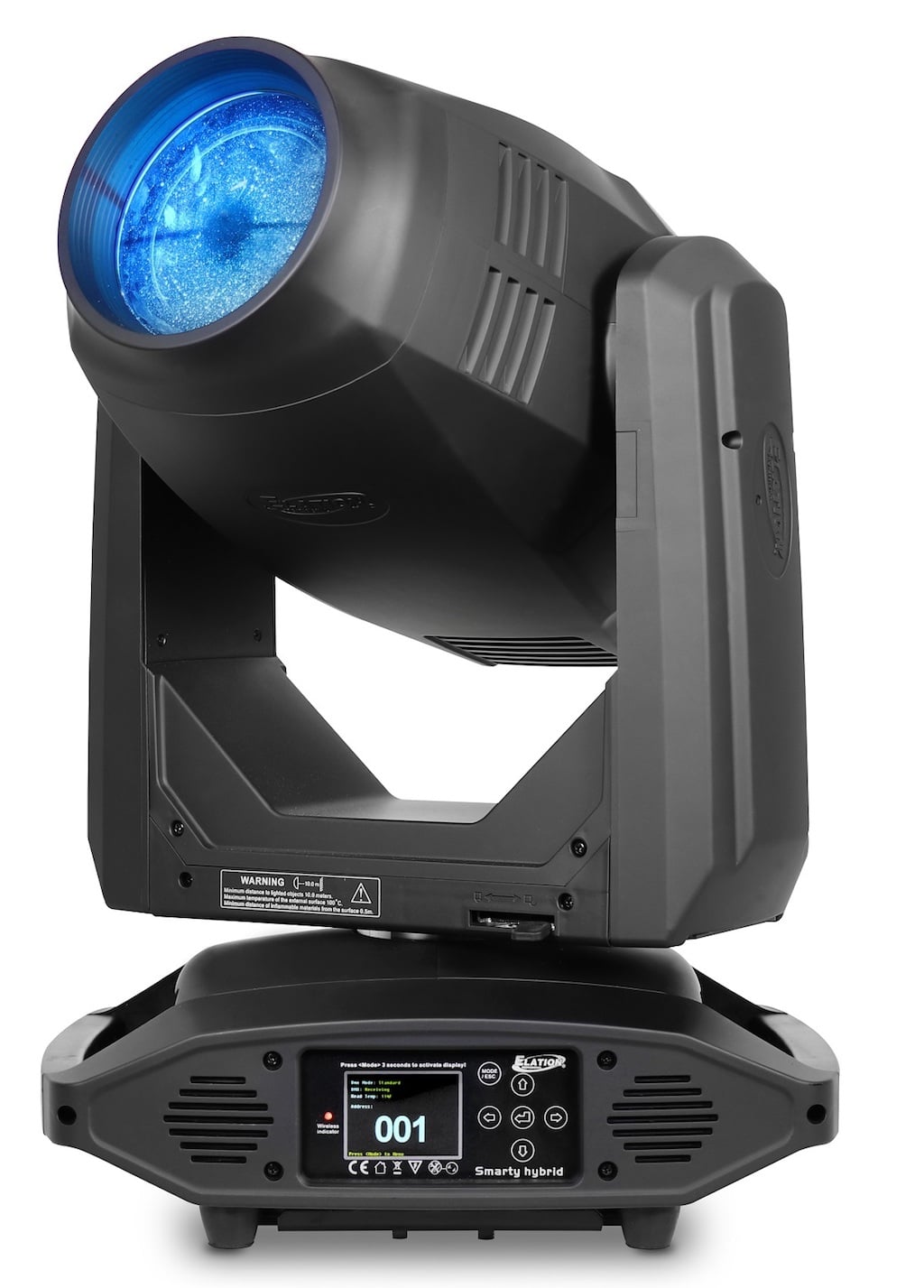 Der Smarty Hybrid™ von Elation ist eine voll ausgestattete Spot / Beam / Wash-Moving Head und einer der kompaktesten CMY-Farbmisch-Hybriden auf dem Markt. Die neue PHILIPS MSD Platinum FLEX 200-Leuchtmittel (mit bis zu 6000 Stunden Lampenlebensdauer) ist dimmbar und die Lampenleistung wird reduziert, wenn diese nicht verwendet wird. Prisma-Overlay Effekt, Zoom, 13 zusätzliche Farben und zwei Gobo-Räder sind nur einige seiner Design-Merkmale.