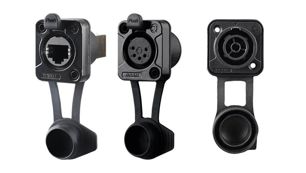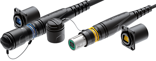 Neu ist die Airtight-Serie mit Ethernet, XLR und Power Steckverbindern. Dank IP65 bietet sie eine effiziente Lösung für Licht-Anwendungen im Outdoor-Bereich.