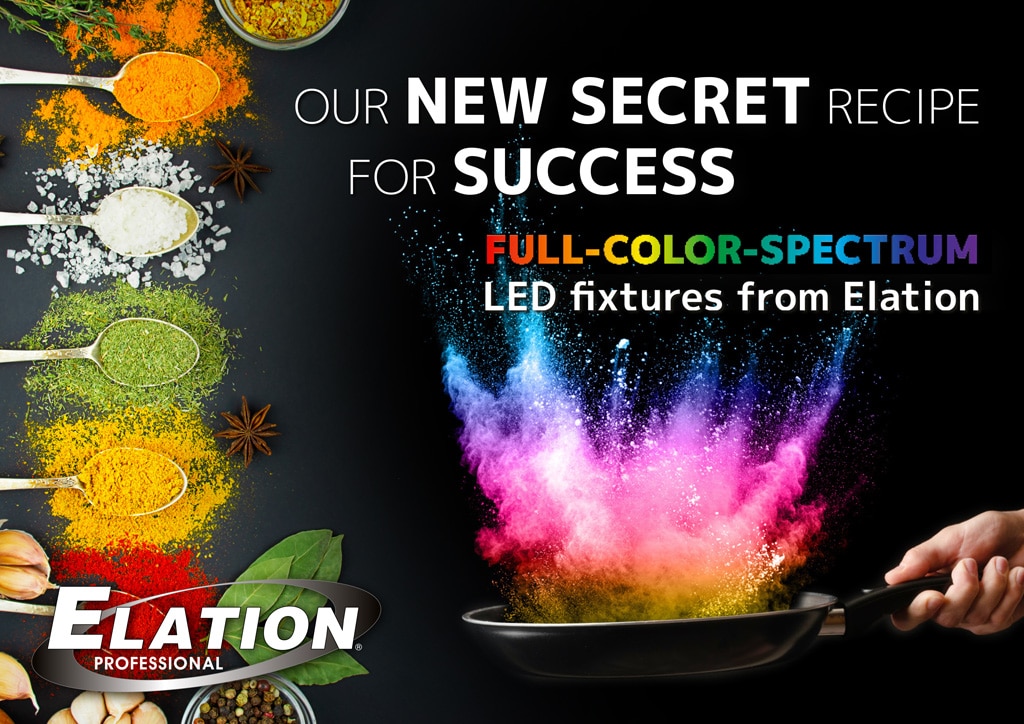 Elation Professional bietet eine große Auswahl an automatisierten Scheinwerfern mit Vollspektrum-LED-Arrays, die in der Lage sind, praktisch jeden Farbton zu erzeugen, den sich ein Designer wünscht – von tiefen gesättigten Tönen über sanfte Pastelltöne bis hin zu jedem erdenklichen Weißton: Sie haben alle Zutaten zur Hand, um das perfekte Rezept zu kreieren!