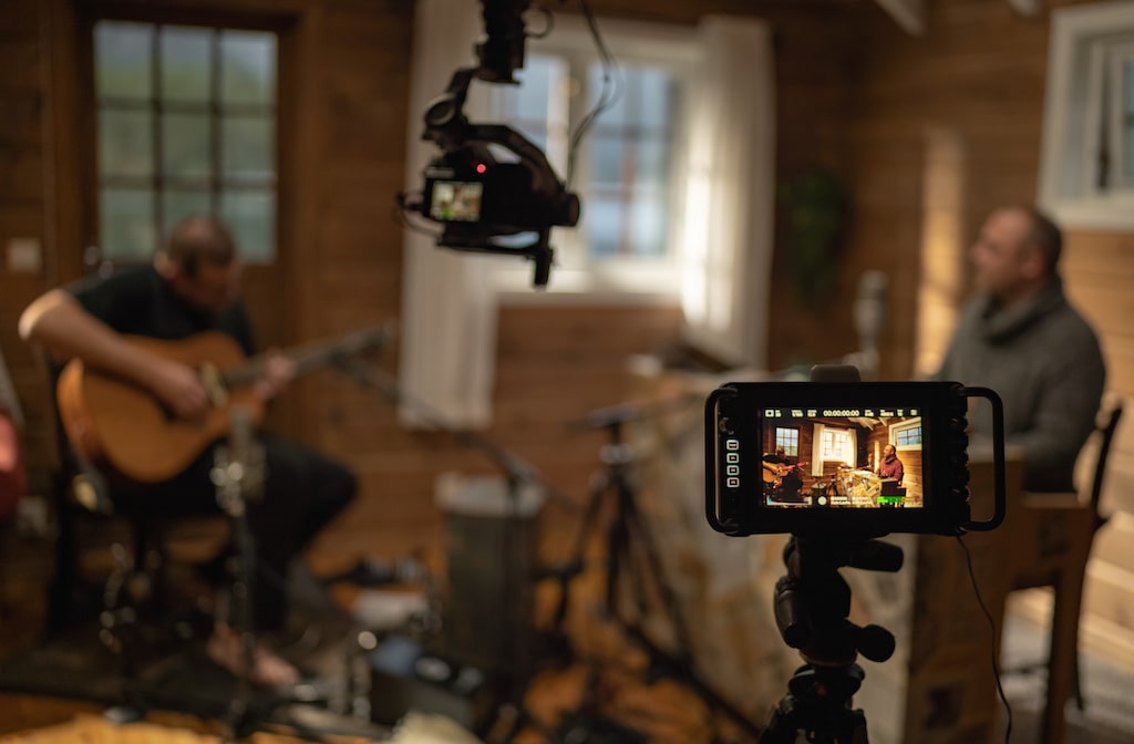Singer-Songwriter Dagobert Weiß und Produzent Jörg Zinke übertragen Performance aus norwegischer Blockhütte mit Teamleiter Robert Klix von Wir Streamen in Potsdam