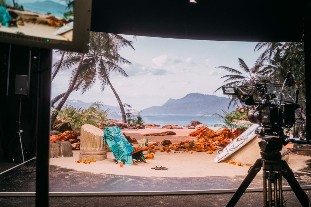 In Anbetracht der zunehmenden Bedeutung von mit LED ausgestatteten virtuellen Studios in der Film- und Fernsehbranche sowie im Unternehmens- und MICE-Sektor hat das virtuelle Studioset von Absen den Mittelpunkt des Messestandes dargestellt und es den Besucher:innen ermöglicht, in Echtzeit mit dem Produktionsset zu interagieren, das sich während der Messe von einem tiefen Laubwald zu einer sommerlichen Strandlandschaft verändert hat.