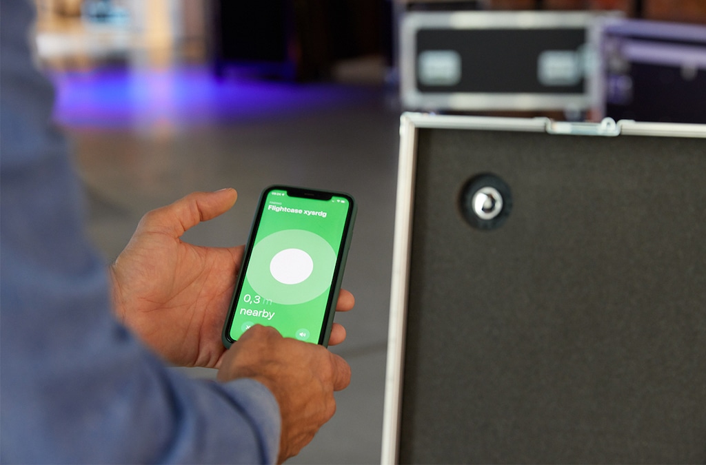 Durch die Bluetooth-Ortung lassen sich Flightcases mit integriertem AirTag auf einer Veranstaltung oder im Lager besser im Blick behalten