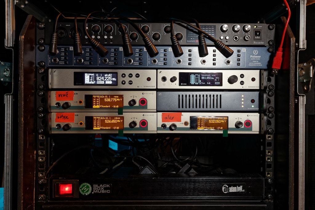 Die Sennheiser Drahtlosstrecken werden in den Bändern A (516-558 MHz) und E (823-865 MHz) betrieben. Von den Netzwerkmöglichkeiten der ew 500 G4 Empfänger macht Benjamin Henze auf der Tournee keinen Gebrauch – geeignete Frequenzen werden nach einem Scan der lokalen HF-Umgebung berechnet und von ihm händisch am Gerät eingestellt. „Ich mag die neuen Pfeiltasten am G4 Empfänger“, merkt Henze an. „Für mich ist die Bedienung am Gerät damit noch komfortabler. Auch die Synchronisation mit den Sendern lässt sich nach meinem Empfinden bei der neuen Serie noch schneller vornehmen. Die kontrastreichen OLED-Displays sind unter sämtlichen Lichtbedingungen immer bestens ablesbar.“