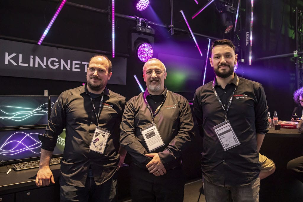 Das ArKaos Team auf der Prolight+Sound: Koen Buys (Head of Product Engineering), Tony De Prins, (Product Owner) und Bartosz Taczala (Lead Software Developer) (v.l.n.r.) (Bild: ArKaos)