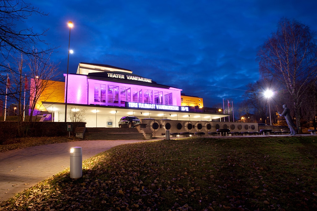 Außenfassadedes Theaters Vanemuine bei Nacht(Bild: Theater Vanemuine)