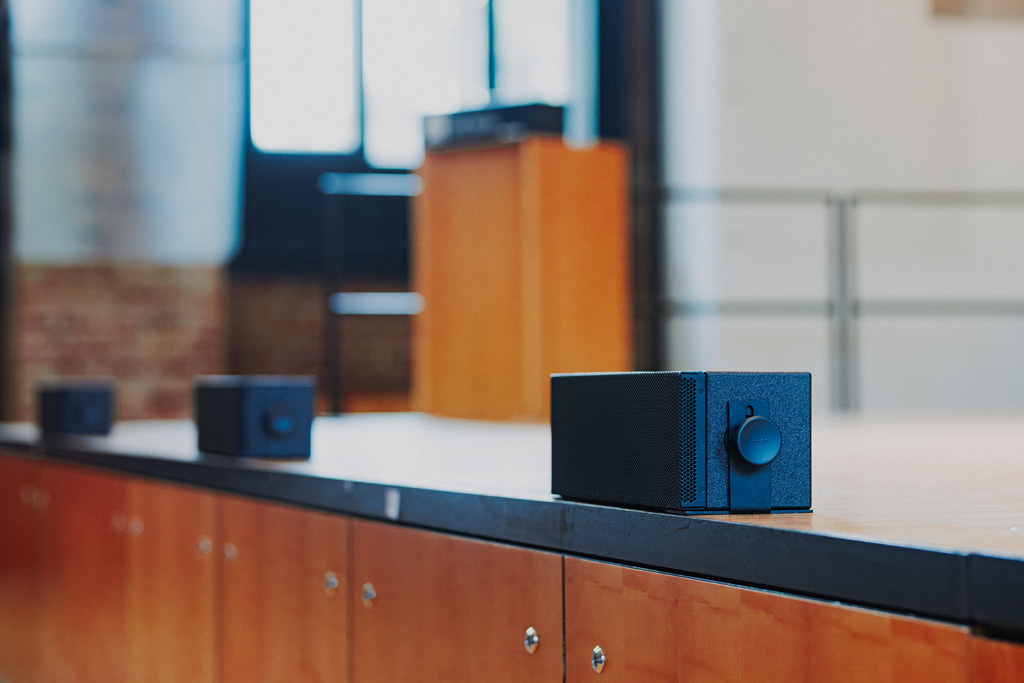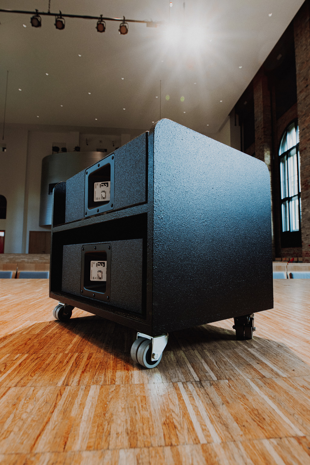 Die Wahl fiel auf Alcons Audio QR24 Lautsprecher, die eine für den Saal optimale Richtcharakteristik bei gleichzeitig kompakter Bauform erreichen. Unterstützt wird die Abdeckung für die vorderen Sitzreihen durch vier Alcons SR9 mit denen ein einheitliches Klangbild erreicht wird. Tiefe Frequenzen werden durch vier Alcons BF151 mkII Subwoofer realisiert. Diese können je nach Anwendungsfall innerhalb der Bühne oder im Bereich der Hauptsysteme angeschlossen werden. Das mechanische Handling von mobilen Geräten konnte durch eine Reihe von Sonderkonstruktionen wie passgenaue Transportwägen und Speakon-Bodentanks mit Anpassungen im 3D-Druck, die im intensiven Austausch zwischen ASC, MMT und der UdK entwickelt wurden, optimiert werden. Das Management der Raumkonfigurationen und der Bassankopplung wurde mithilfe eines leistungsstarken Lautsprecher- und Raumakustikprozessor umgesetzt, der sowohl Resonanzen im Raum reduziert als auch eine Optimierung der Phasengänge zur korrekten akustischen Summierung der Hauptsysteme mit den Subwoofern vornimmt.