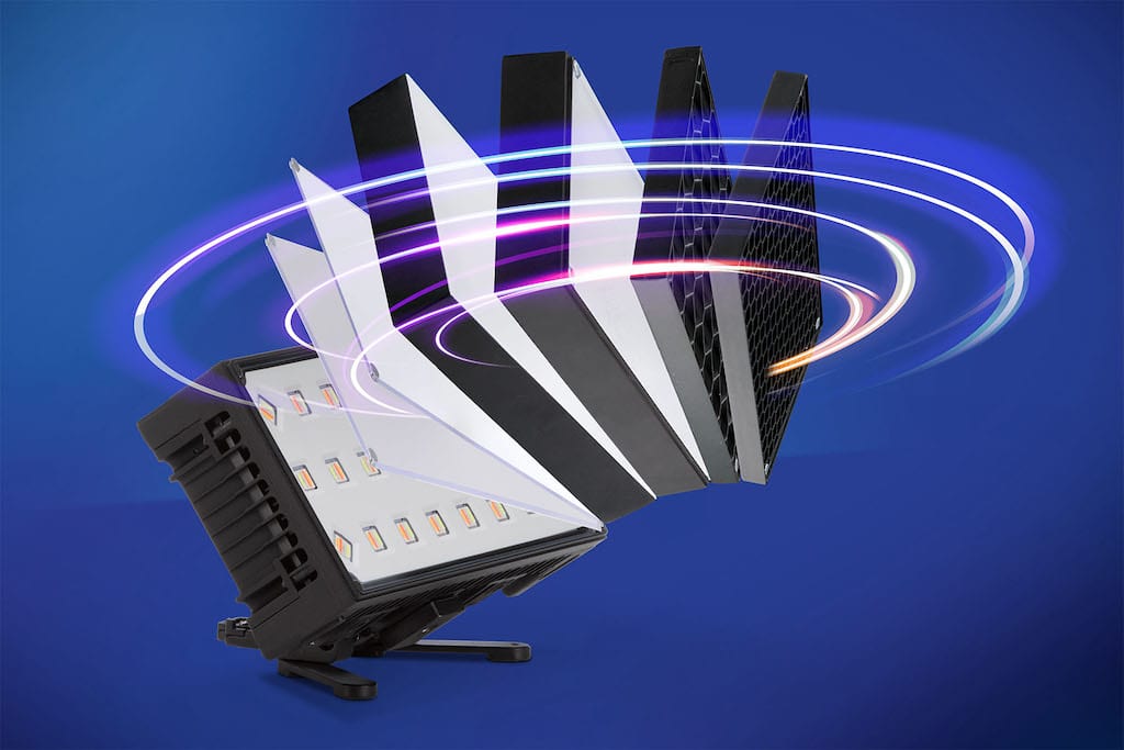 Mit Blick auf die szenische Beleuchtung und die Anpassungsfähigkeit seien außerdem sechs Strahlmodifikatoren erhältlich, mit denen der native 110°×100°-Strahl des HydraPanel angepasst werden kann. Dazu gehört das Diffusor Sheet 100, das ein weiches Licht und einen Abstrahlwinkel von 100° biete, ohne die Höhe zu verändern. Ein Soft Frame 100-Filter könne hinzugefügt werden, um den Filter von der Hydra Panel-Einheit zu distanzieren und so die Glätte zu verbessern und Schatten zu erzeugen, wenn das Gerät an einer Kamera oder an Gerüsten und Bühnen angebracht wird.