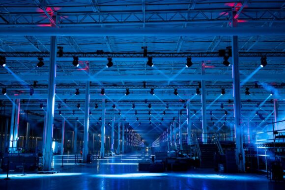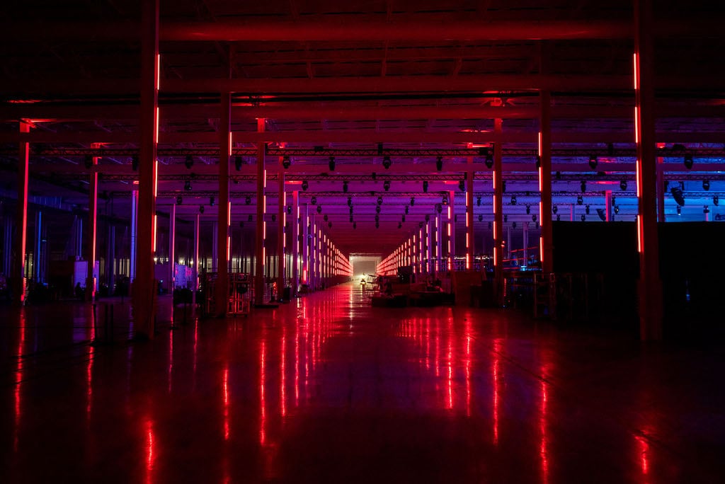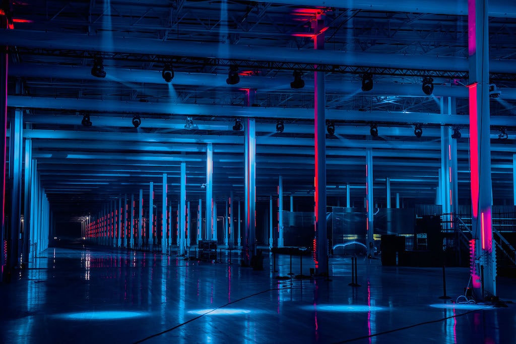 Der Licht- und Grafikdesigner Rob Ross hat bei der Einweihungsfeier von Teslas Gigafactory in Texas über 500 Astera Titan Tubes eingesetzt.