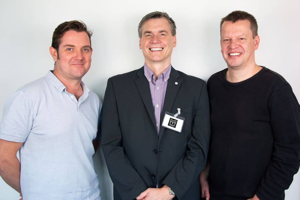 Dom Harter Managing Director Martin Audio; Matthias Exner General Manager Audio-Technica Germany; James King Director of Marketing Martin Audio(Bild: Martin Audio)