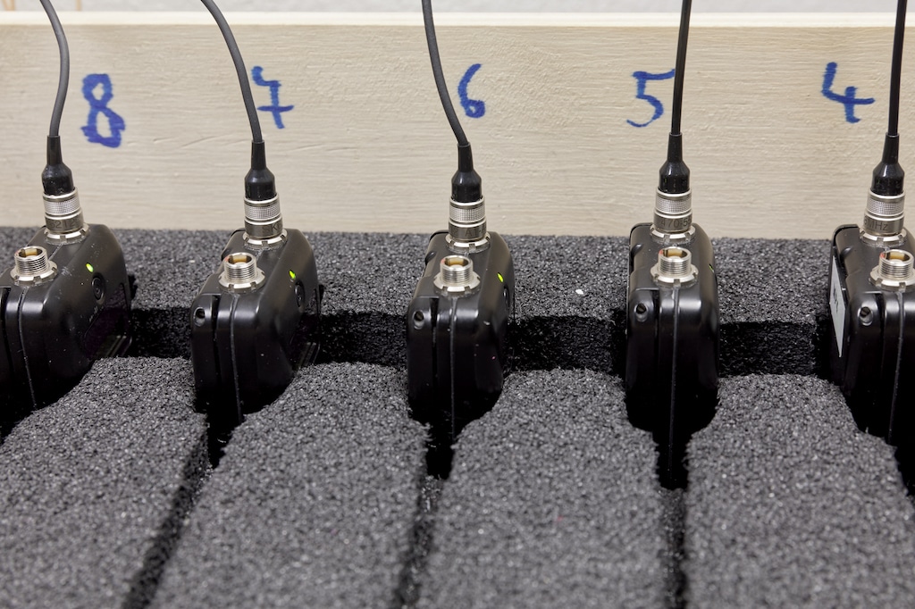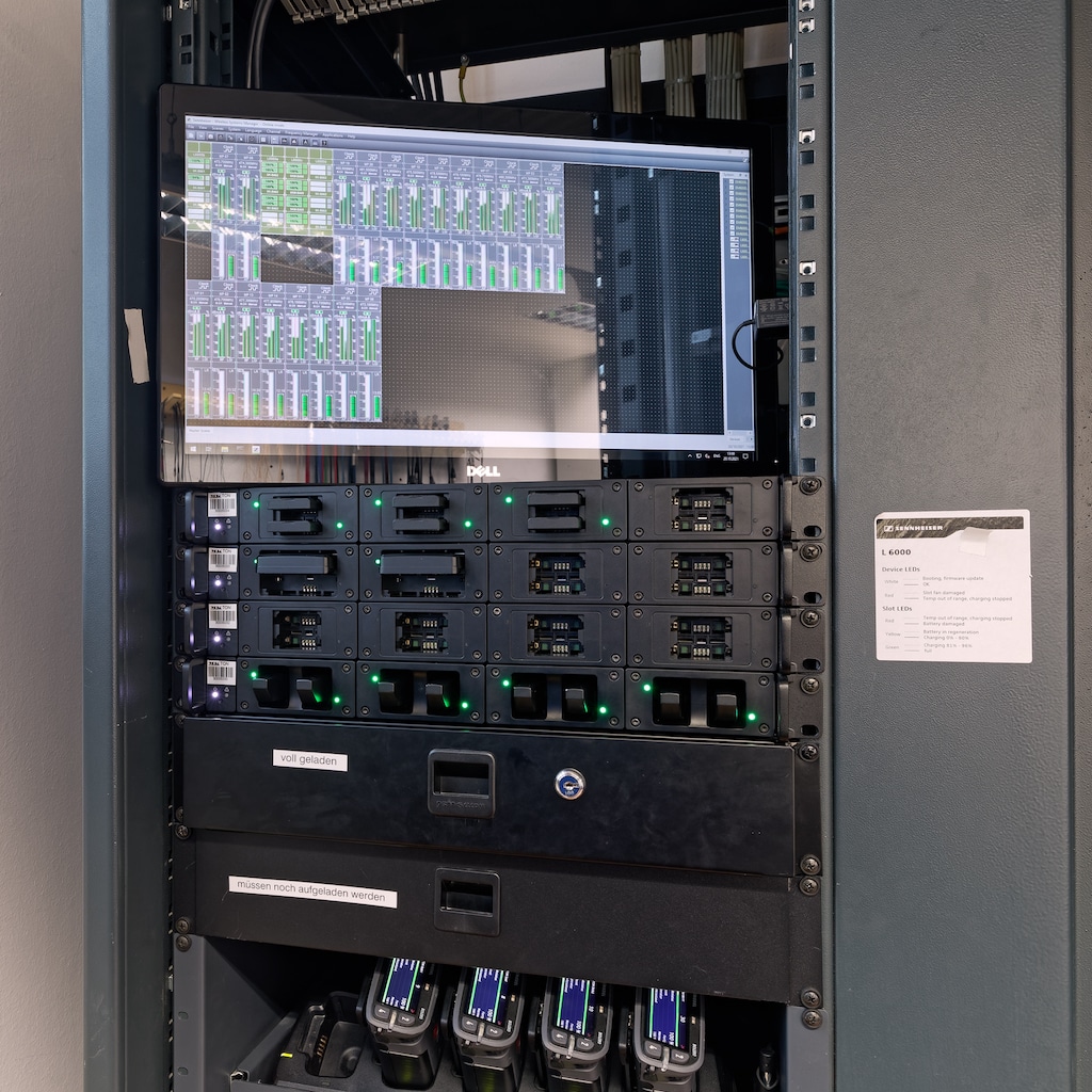 Zur Akkuladetechnik der Sennheiser Digital 6.000 Systeme äußert sich Wolfram Schild wie folgt: „In den vergangenen Jahren hat sich bezüglich der Akkutechnik wahnsinnig viel getan. Für alle Hand- und Taschensender besitzen wir eine doppelte Akku-Ausstattung, so dass sich einer von zwei Akkus grundsätzlich in einer Ladestation befindet. Im Moment betreiben wir die L 6.000 Ladestationen mit drei unterschiedlichen Lademodulen für die kleinen und großen Taschensender sowie für die Handsender.“