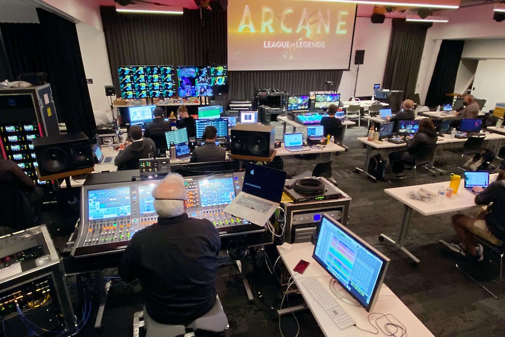 Eines der bisher größten Projekte von BC Live war eine Veranstaltung zur Feier des Starts von „Arcane“, einer animierten Netflix-Serie, die im Universum von Riot Games’ „League of Legends“ spielt. Collins und sein Team streamten das Red Carpet Event auf Twitch. Das Team habe sich um alles gekümmert, von der anfänglichen Übertragung der Veranstaltung bis hin zur Live-Premiere der Show und einer erneuten Ausstrahlung für das europäische Publikum, die gleichzeitig in 22 Sprachen gestreamt wurde. Um dies zu bewerkstelligen, zeichnete das Team die Sendung in ProRes auf einem Tower mit vielen AJA Ki Pro Ultra Plus-Recordern auf. In eine Master-Videodatei wurden 22 verschiedene Sprachen eingebettet, die über eine Encoder-Farm gestreamt wurden, und jede dieser Sprachen wurde diskret auf einem Ki Pro aufgezeichnet. Für die erneute Ausstrahlung schrieb das Team einen Code, um die Ki Pros in Gruppen abzuspielen, und die Ausgaben wurden an verschiedene Kodierungskanäle gesendet, um in verschiedene Regionen zu gelangen.