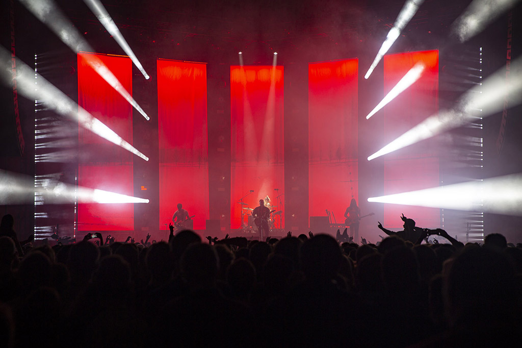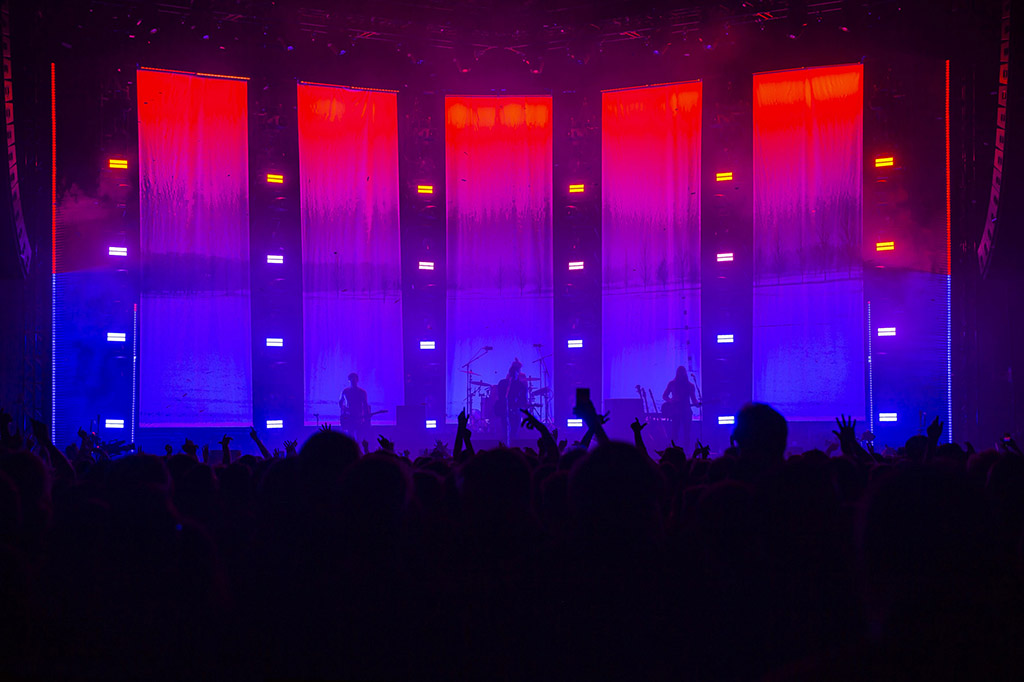 Das Set Design der Show wird von fünf Backdrop-Panels dominiert, auf die Artwork des Silent Alarm Albums projiziert wird. Ryan Hopkins, LD & Director von LCR, wollte diese Panels zusätzlich als eindrucksvolles Gestaltungselement für die Show nutzen. Dafür wurden je zwei Color Force II Bars oben und unten an den Panels verwendet. Sie erzeugen spektakuläre großflächige Wash-Effekte.