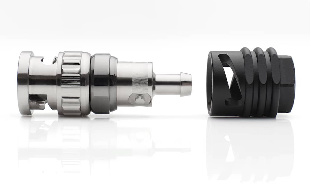 Durch sein Stecksystem vereinfache er deutlich die Montage von BNC- und RG-Kabeln. Der Steckverbinder kann dabei einfach per Hand oder mit Hilfe von zwei Schraubschlüsseln (Größe 12 mm und 13 mm) verbunden werden. Dazu entmantelt man das Kabel mit Hilfe eines scharfen Messers oder Abmantelgeräts, steckt die Leitung in den Steckverbinder und arretiert diesen durch Festdrehen der Abschlusskappe. Er sei daher also ideal geeignet für das sichere und unkomplizierte Zusammenbauen oder eine Reparatur von Kabeln unterwegs.