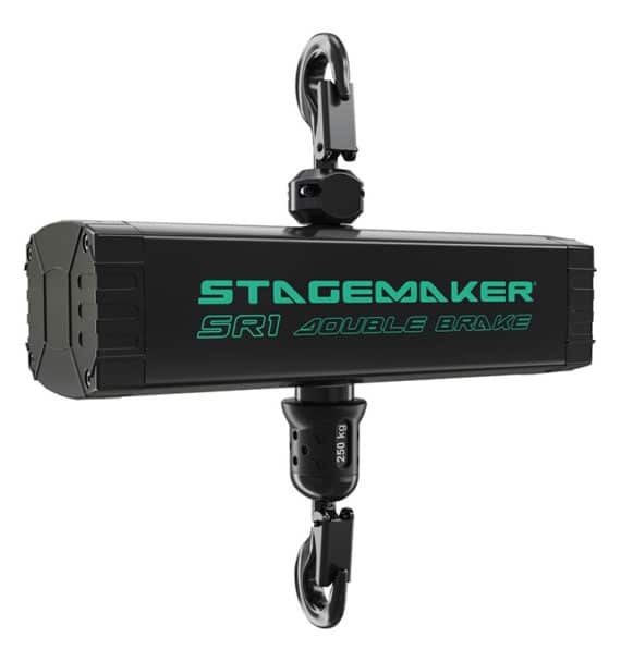 „Hier stellen die besonders kleinen Motoren eine gute und sehr sinnvolle Erweiterung unseres Materialbestands dar“, sagt Michael Terwint, Geschäftsführer BTL Veranstaltungstechnik. „Auch im Messebereich, unserem Hauptgeschäft, entspricht der SR1 exakt unseren Anforderungen. Durch das geringe Eigenwicht kann er vielseitig eingesetzt werden und wir können mehr Messeprojekte mit Motoren umsetzten. Damit erleichtert der SR1 unsere Arbeit und ist eine echte Alternative zu Genies oder Handkettenzügen.“ Um die Handhabung zu erleichtern werden Stagemaker SR1 Kettenzüge standardmäßig mit einem oberen und einem unteren drehbaren Haken ausgestattet. Durch Um hängen des Kettenspeichers ist ein schneller Wechsel zwischen Kletterzug- und Stationärbetrieb möglich. Darüber hinaus besitzt der SR1 das neue Kettenradsystem Perfect Push der Stagemaker-SR -Serie mit Zwischenzähnen für den Kettenantrieb sowie das Kettenführungssystem Chainflux MKII.