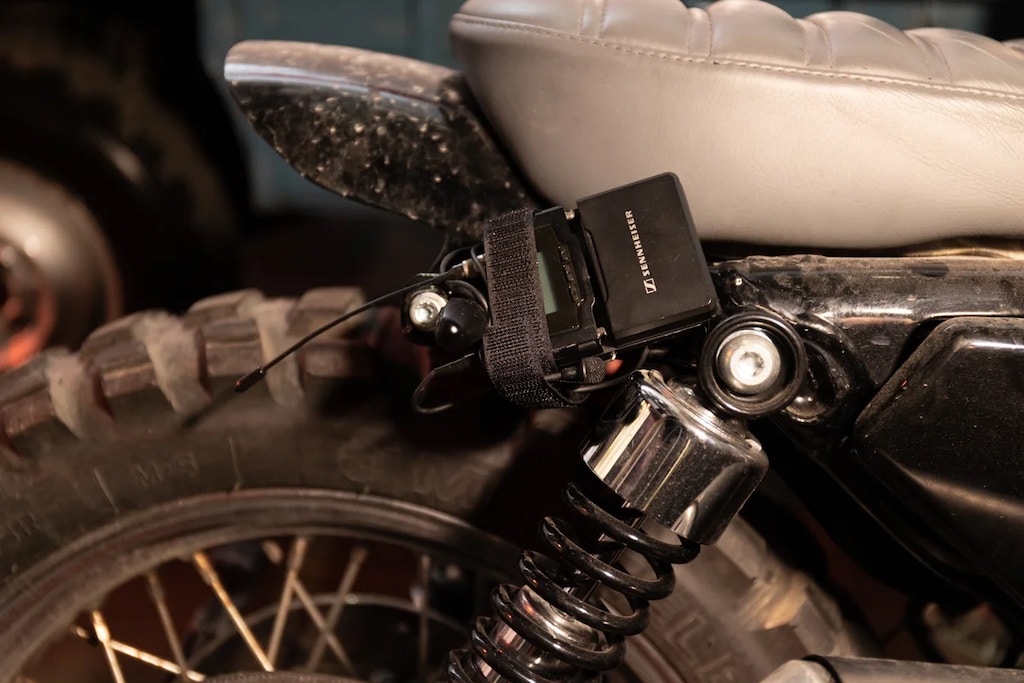 Hinzu kamen 23 Taschensender SK 6000, die für eine Vielzahl unterschiedlicher Instrumente genutzt wurden und den Musiker:innen auf der Bühne sowie der mit ihr via Catwalk verbundenen B-Stage uneingeschränkte Bewegungsmöglichkeiten eröffneten. Aber auch andere „Klangerzeuger“ waren mit Taschensendern ausgestattet worden, darunter eine Harley Davidson und ein Moped, die mit nahe den Auspuffrohren platzierten Sennheiser-Ansteckmikrofonen MKE 2 abgenommen wurden.