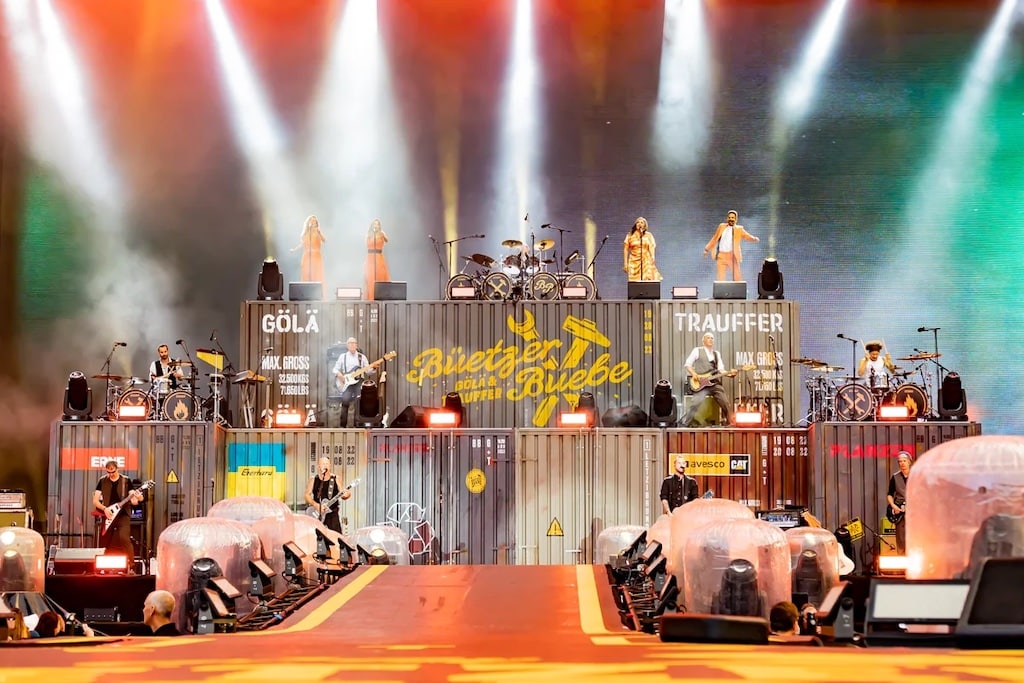 Die „Büetzer Buebe“ haben am 19. und 20. August 2022 das erste Mal im Zürcher Letzigrund-Stadion eine Headliner-Show gespielt. Drahtlostechnik von Sennheiser trug zu einem Klangbild bei – sowohl im Stadion selbst als auch bei der Live-Übertragung im Swisscom-Portal blue TV.