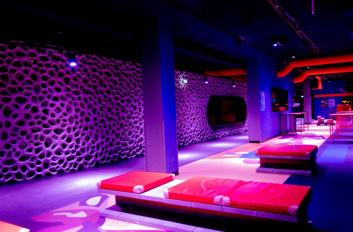 In den umliegenden Lounge- und Gastro-Bereichen sorgen 127 Stück der Cameo H1 FC Houselights für die flexible farbliche Ausleuchtung. Mit ihrem schlanken, reduzierten Design lässt sich die H1 nahtlos in unterschiedlichste Bereiche integrieren und überzeugt zudem mit ihrer flexiblen Ansteuerung.