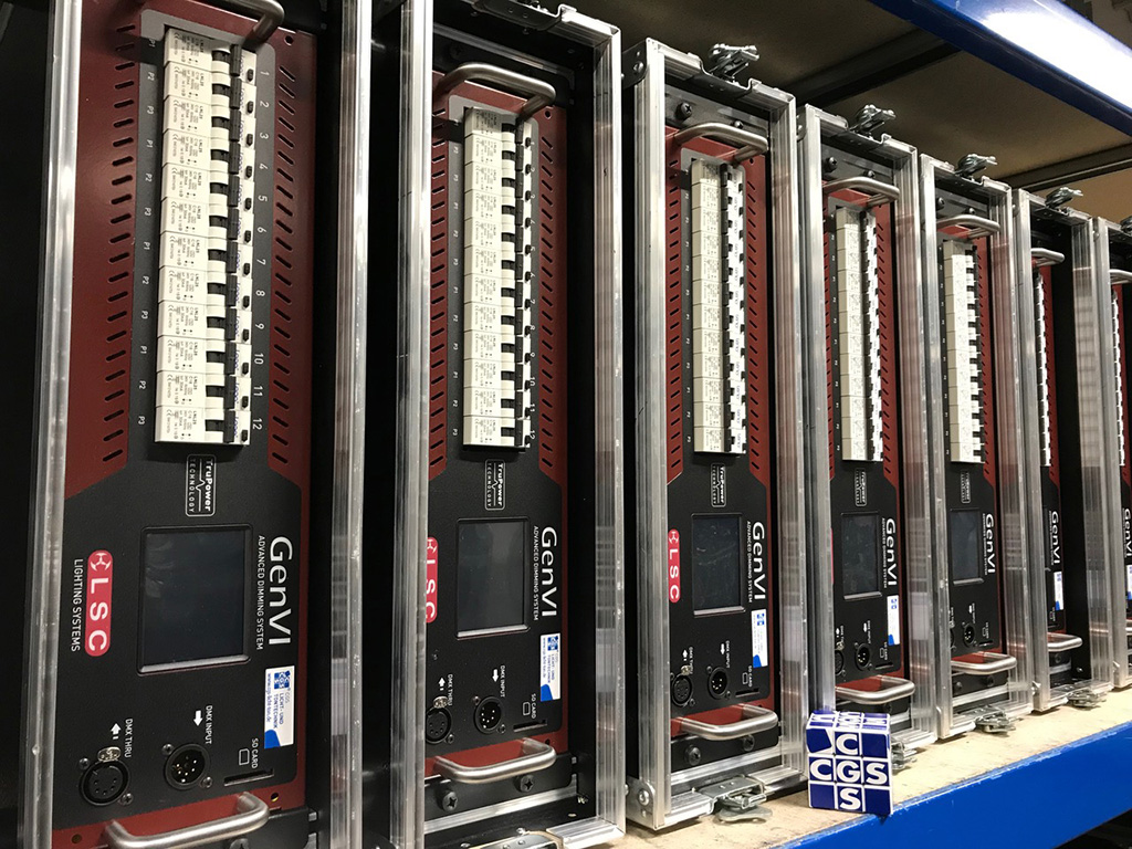 Zum einen stehen nun große Stückzahlen des Dimmers GenVI von LSC in Denkendorf zur Verfügung. GenVI repräsentiert die neueste Generation von Dimmerpacks des australischen Herstellers LSC Lighting Systems. Die in GenVI integrierte Technologie entspricht exakt dem, was aktuell – im Umbruch von konventioneller zu LED-Beleuchtung – verlangt wird. Denn GenVI kann sowohl konventionelles als auch LED-Licht verwalten und bereits Kleinstlasten dimmen, für die andere Dimmer gar nicht in Frage kommen. Ohmsche und induktive Lasten und selbst Spiegelkugelmotoren stellen kein Problem dar. Zudem kann GenVI auch als Stromverteilung eingesetzt werden. Jeder Kanal kann dabei separat als Relais konfiguriert werden, um beispielsweise Movinglights und LED-Scheinwerfer sicher mit Strom zu versorgen. Hierbei handelt es sich nicht um eine softwareseitig emulierte Switch-Kurve, sondern um echte Relais (TruPower). Mittels Auto-Power-Funktion können die als TruPower konfigurierten Kanäle automatisch eingeschaltet werden, sobald ein DMX-Signal anliegt. „Wir haben uns für GenVI von LSC entschieden, weil die Dimmer kompakt und zuverlässig sind“, sagt Christian Geyer, Geschäftsführer von CGS Dry Hire. „Durch das ‚digitale Hotpatch‘ werden die Fehlerquellen Kabel und Buchse ausgeschlossen. Die Geräte haben also nur noch wenige mögliche Fehlerquellen, liefern eine sehr gute Performance und sind für jeden leicht verständlich. Daher ist die Investition im Dry-Hire absolut sinnvoll.“