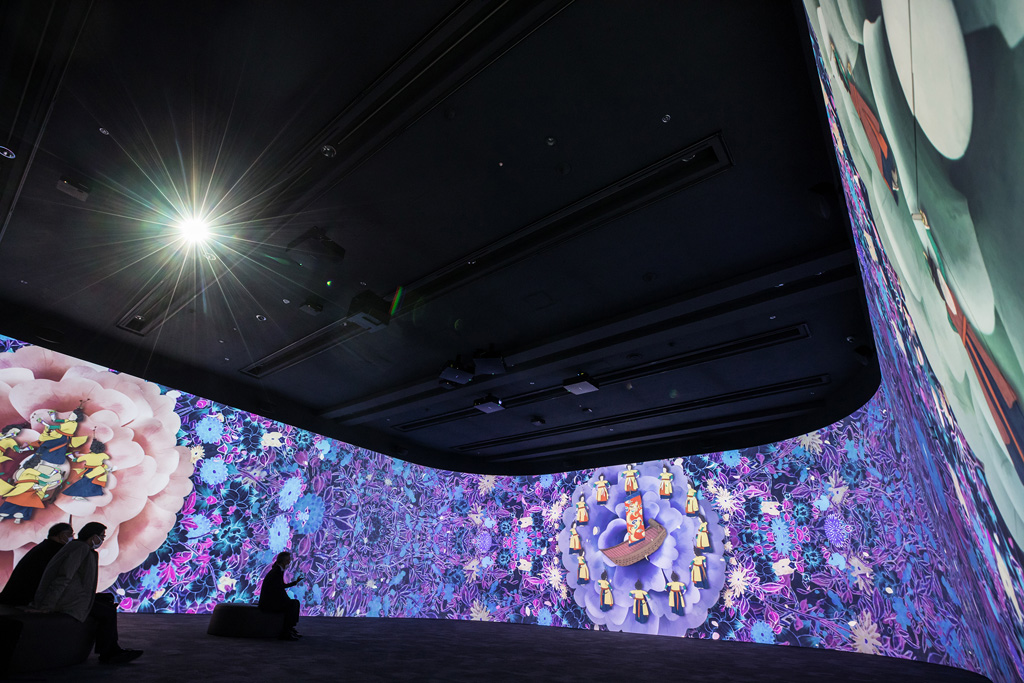 Die offiziell Ende Mai eröffnete Ausstellungfläche umfasst vier Attraktionen, die eine Reihe visueller 3D-Technologie nutzen, um mit digitalen Mitteln eine physische Welt nachzubilden. Einer der Höhepunkte ist die Gallery 1, in der Content mit 8K-Auflösung auf eine 60 Meter lange und 5 Meter hohe Panorama-Leinwand projiziert wird.