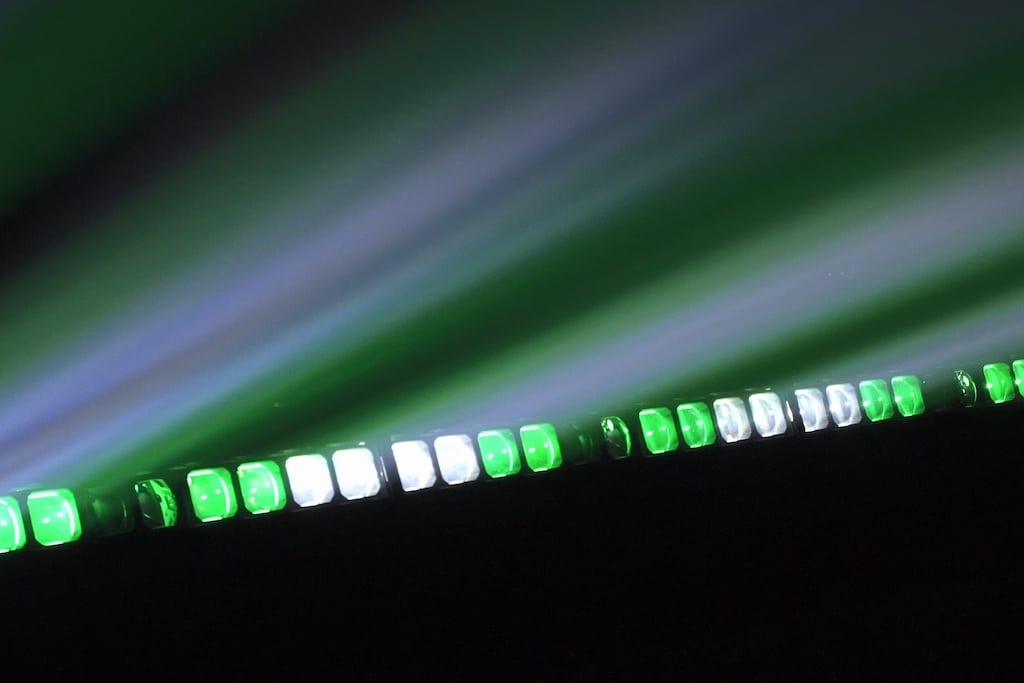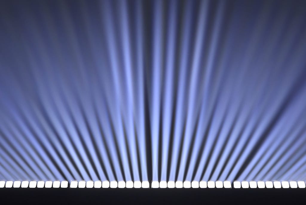 Die Volero Batten Aqua ermöglicht die separate Steuerung des Zooms in 2 Gruppen von 5 nebeneinander liegenden Linsen, wodurch eine dynamische Bewegung des Lichtstrahls entstehe.
