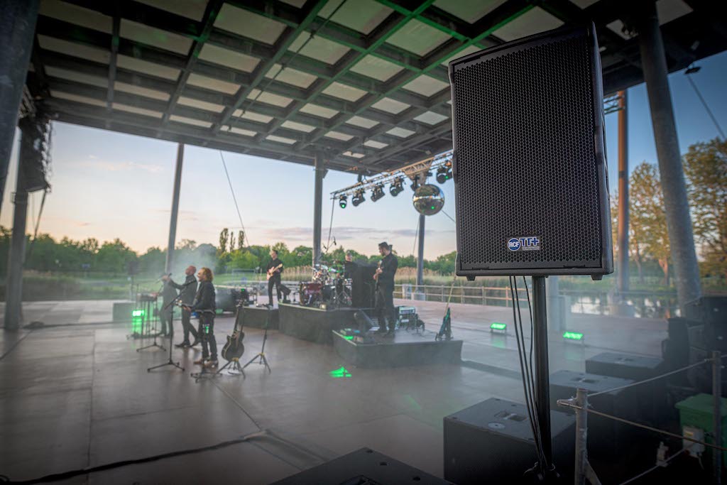 Die Seebühne, in einem Park in Magdeburg gelegen, ist ein offen gestalteter Veranstaltungsort, der ein stimmungsvolles Ambiente bietet aber gerade wegen seiner Bauart den Tontechnikern einiges abverlangt. Der Zuschauerraum und die Tribünen sind zergliedert und es gilt in viele verschiedene Richtungen und Höhen zu beschallen. Um dieser Herausforderung gerecht zu werden, setzte Dalterio 2 x 8 HDL 30 Module als Main-Array ein. Da sich die Bühne auf gleicher Höhe des Parketts befindet, wurden die 12 x Sub 9004 rechts und links neben der Bühne in einer Reihe angeordnet (Endfire) platziert. Zur Beschallung eines Außenrangs ganz rechts der Bühne dienten 4 x HDL 30 Module, die rechts von der Bühne gestacked in diesen Bereich abstrahlten. Als Nearfills hingen 2 x TT22 in der Bühnentraverse. Weitere 2 x TT22 sorgten als Outfill rechts und links der Bühne für eine präsente Klangverteilung.