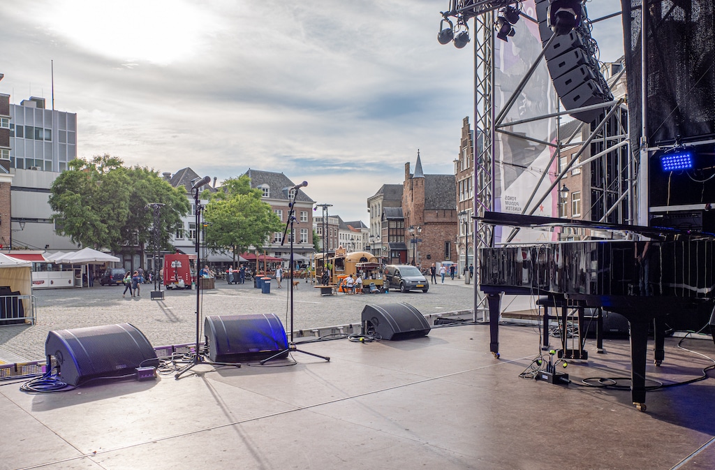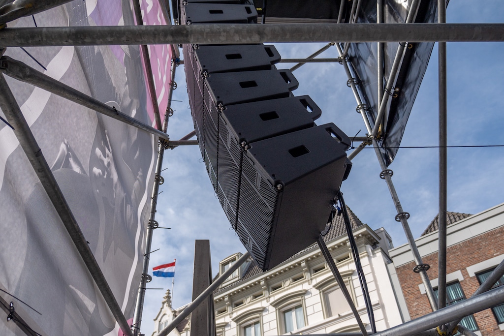Für die Stage vor dem Noord-Brabants Museum lieferten jeweils 2× rechts und links der Bühne untereinander angeordnete aktive 2-Wege Zeilenlautsprecher Ingenia IG3T den Sound. Diese wurden ergänzt durch 4× Ingenia IG1T als In- und Outfills und 4× Vio S118r Subwoofer und 8× Opera Wedges auf der Bühne.