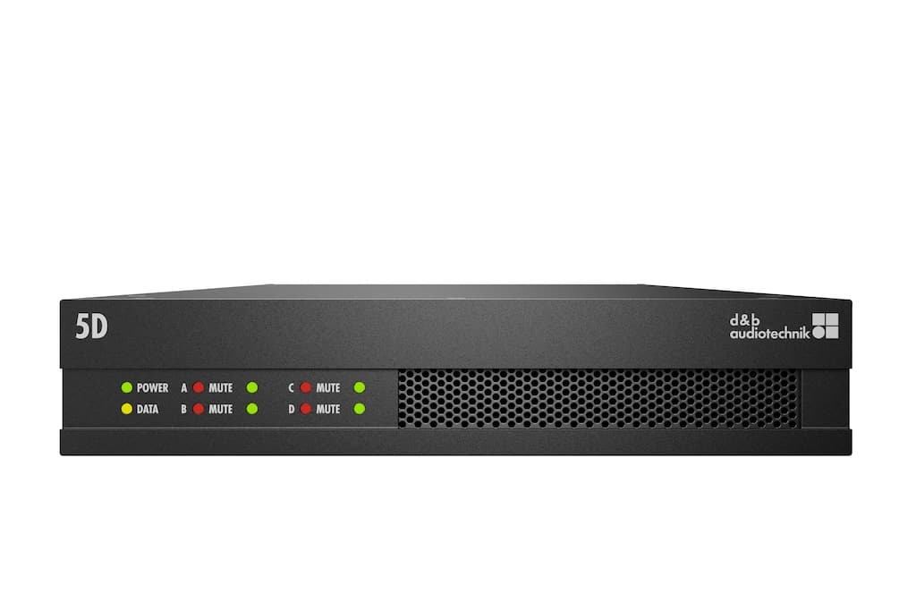 Der 5D sei der erste d&b Verstärker mit integriertem Dante-Netzwerk. Diese Funktion ermögliche Änderungen der Systemkonfiguration und den Einsatz dezentraler Systemdesigns. Damit soll sichergestellt werden, dass ein d&b System die Skalierbarkeit, Flexibilität und Zuverlässigkeit bietet, die für die heutigen Installationen erforderlich seien.