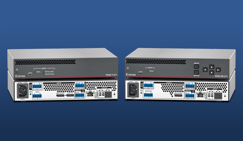 Extron hat die leistungsstarke, preisgekrönte Glasfaserplattform FOX3 um zwei neue DisplayPort-Glasfaser-Extender erweitert. Der FOX3 T 211 und der FOX3 SR 211 ermöglichen die Übertragung von DisplayPort-Video-, Stereo-Audio-, Steuerungs-, IR- und 3D-Synchronisationssignalen über Glasfaserkabel über große Entfernungen. Sie wurden für eine außergewöhnlich hohe Bildauflösung entwickelt und liefern mathematisch verlustfreies 4K/60 @ 4:4:4 über eine Glasfaser.