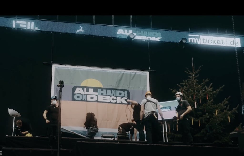 Beim größten Live-Stream-Spenden-Musikevent des Jahres 2021 für existenzgefährdete Künstler:innen und Mitarbeitende in Kunst und Kultur, präsentiert von Amazon Music, spielten 50 Künstler:innen, darunter Revolverheld, Max Giesinger oder Eko Fresh live aus der Barclays Arena in Hamburg. Jetzt veröffentlicht Amazon Music eine Mini-Dokumentation mit exklusiver Behind The Scenes-Footage vom Event, um die Spendenbereitschaft hoch zu halten. Die Dokumentation ist in der Amazon Music App sowie auf dem YouTube-Kanal von Amazon Music zu sehen. Illy Korda, Bookerin und eine der Veranstalter:innen von #AllHandsOnDeck: „Ich bitte alle, noch bis Weihnachten weiter zu spenden und darüber hinaus weiter auf euch aufzupassen: Masken zu tragen, Abstand zu halten, euch zu impfen, euch zu boostern. Damit wir nämlich alle bald wieder auf wunderschönen Konzerten stehen können.“