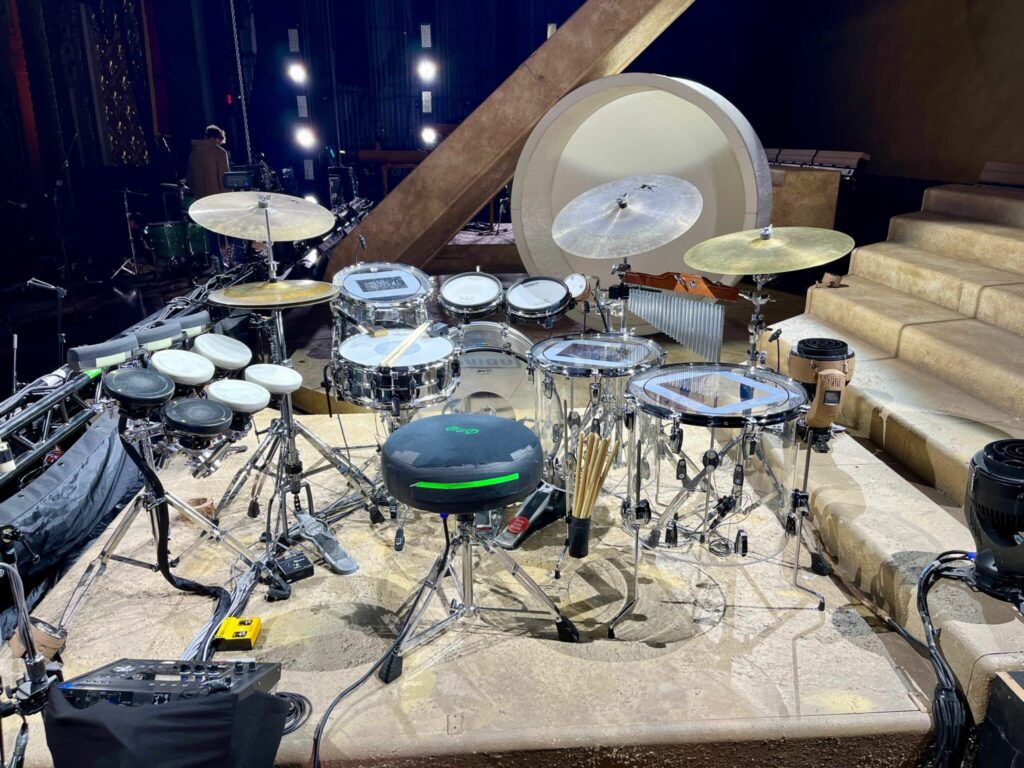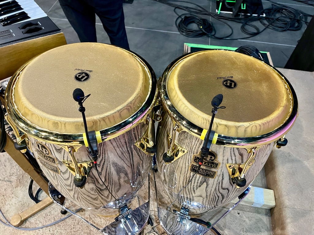 „Mit dem neuen 4055 Kick Drum Mikrofon ist das gesamte Drum-Set mit DPA [ausgestattet]“, erklärte Harvey. „Wir haben auch ein 2011C Twin Diaphragm Cardioid für die Topabnahme der Snare und 4099 CORE Extreme SPL Mikrofone unter der Snare, an den Hi-Hats, den Toms und den unter den Becken. Für Conga und Quinto haben wir das 4099 loud SPL. Lorde selbst, Ella, nutzt ein d:facto 4018VL Gesangsmikrofon in Silber-Nickel, außerdem haben wir fünf Background-Sänger, die alle 4488 Core Headset-Mikrofone verwenden. Wir haben mit den 4488 von DPA begonnen, nachdem wir mit den 4088 Directional Headsets von Clair Global experimentiert hatten. Sobald wir sie aufgesetzt hatten, waren wir begeistert, wie bequem sie sind. Außerdem kann man den Gelenkarm wirklich perfekt platzieren.“