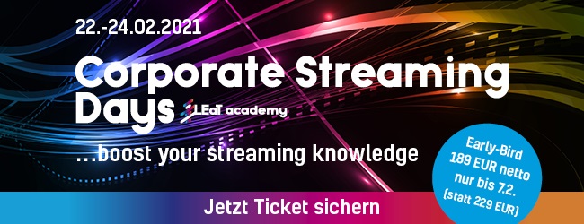 Events online sind im Prinzip wie solche offline – reduziert auf zwei Sinne. Dies hat Auswirkungen auf das Storytelling. Doch welche? Das verrät Creative Producerin Konstanze Agatz in ihrem Vortrag “Call for Attention” durch intelligente Programmgestaltung bei den Corporate Streaming Days vom 22. bis 24. Februar 2021.