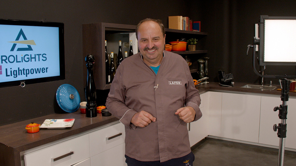 Lafer äußerte sich zu seiner Investition: „Kochen ist schließlich ein sensorisches Erlebnis, all die Gerüche und verschiedenen Geschmacksrichtungen spielen eine wichtige Rolle bei der Zusammenstellung und dem Genuss der Gerichte. Und nicht nur das, der Mensch isst auch mit den Augen. Leider können wir Geruch und Geschmack noch nicht übertragen, aber damit unser Kamerabild ganz natürlich und realistisch ist, arbeiten wir mit professionellen Beleuchtungsangeboten von Prolights. Die Ecl Panel TWCJr sind für uns einfach großartig. Sie bringen jede kleine Farbnuance perfekt zur Geltung, so dass alle Zutaten und Gerichte so frisch und appetitlich auf den Bildschirmen unserer Zuschauer ankommen, wie wir sie hier im Studio zubereiten. Auch meine Beleuchtungscrew freut sich über die Zuverlässigkeit und die unkomplizierte Bedienung. Es ist wie beim Kochen, die Qualität der Zutaten muss stimmen, wenn man ein perfektes Ergebnis erzielen will.“