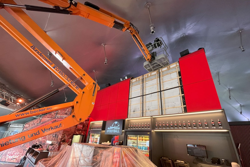 Der Installation der 6×6 dvLED-Videowall erforderte eine besondere Umsetzungslogistik. Alles musste bei laufendem Betrieb passieren und die bestehende Bar direkt darunter musste erhalten bleiben (Bild: Vogel’s)