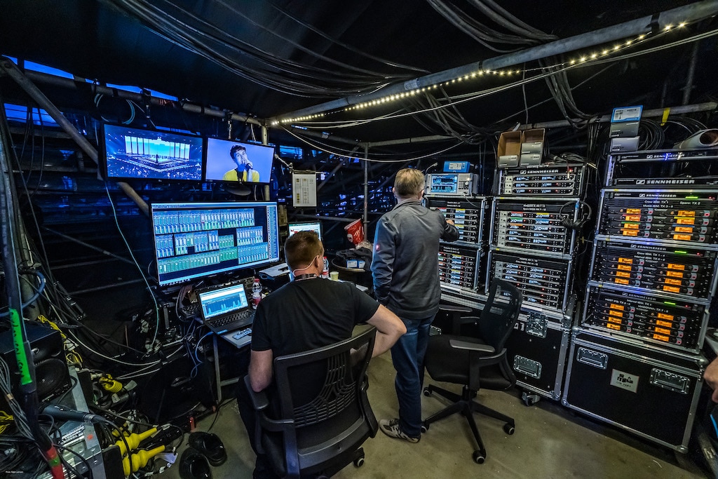 „Die größte technische Herausforderung war, dass der ESC 2019 in zwei Hallen stattfand und eine dritte Halle des Kongresszentrums Tel Aviv als Pressezentrum genutzt wurde“, sagt Volker Schmitt, Director Customer Development und Application Engineering bei Sennheiser. „Die Haupthalle mit der Bühne und ihrer außergewöhnlichen LED-Wand bot Platz für 7.500 Zuschauer. Von hier aus wurden die Bühnenshows in eine zweite Halle mit dem Green Room übertragen, wo weitere 2.000 Zuschauer die Live-Shows über eine riesige Videowand verfolgten.“