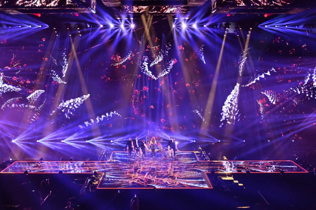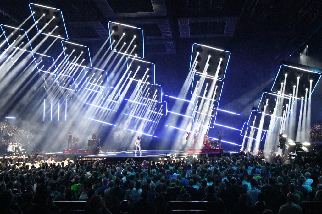 Das Herzstück des Designs war eine Video- und Lichtinstallation, die über der Bühne schwebte. Den Look der 360°-Bühne unterstützten dabei 396 Claypaky Tambora Linear 100 und der Skylos mit seiner Weißlicht-Laser-Lichtquelle. Fredrik Stormby, der Licht- und Screen-Content-Designer, wählte die Claypaky-Scheinwerfer aus. Er arbeitete mit dem Produktionsdesigner Florian Wieder zusammen.