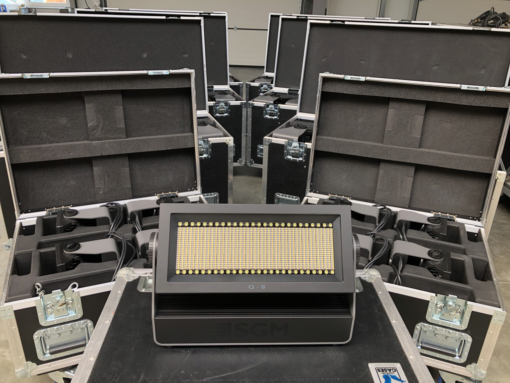Der Q-8 sei wasserdichter (IP66 statt IP65), heller und hat einen neuen Look. Die Dimmung sei verfeinert und die Steuerung sowie anderen Funktionen optimiert worden. Mit der Weiterentwicklung der Q-7 von SGM möchte Eventures aus dem Rheinland das Technik-Sortiment und die Möglichkeiten erweitern.