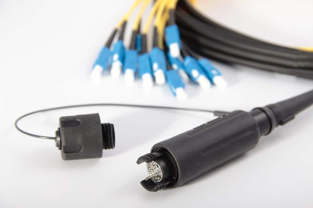 Expanded-Beam-Stecker mit 12 Faserkanälen und LEMO-Kabelstrecken