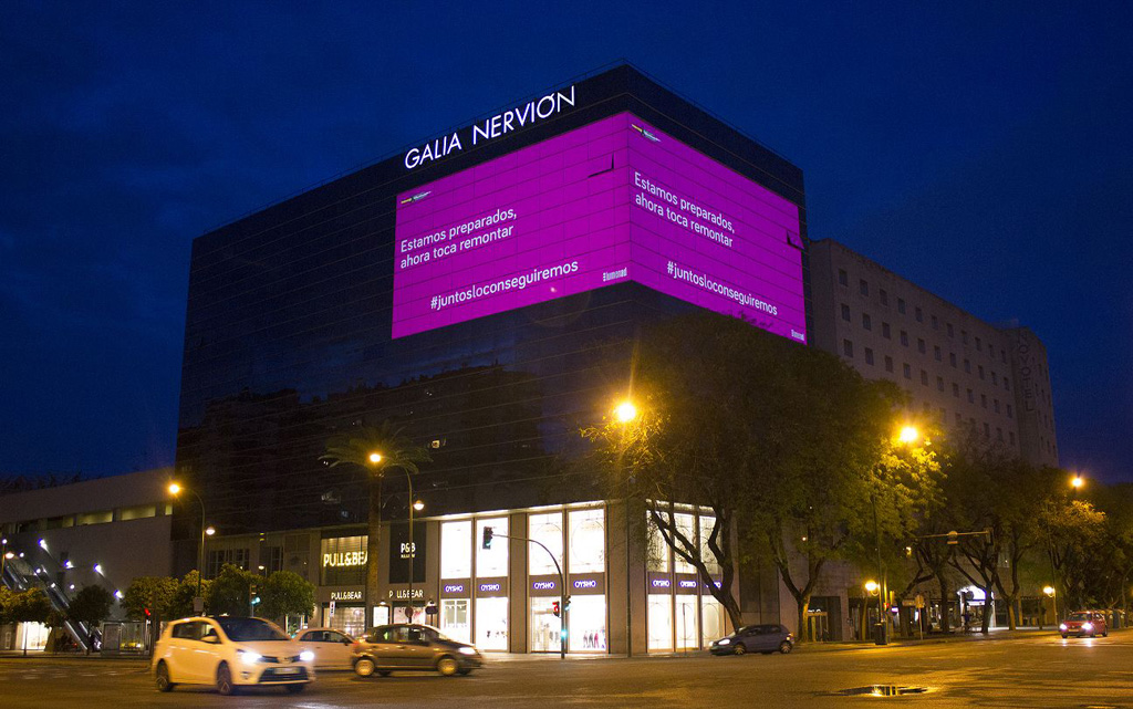 Direkt an einer der Hauptgeschäftsstraßen im Zentrum Sevillas bespielen die beiden Projektoren die Fassade des Galia Nervión Gebäudes. Das Projekt unter dem Namen „Big Brand“ bietet großen Marken eine Plattform um Imagekampagnen prominent zu positionieren. Zu den Marken, die hier bereits geworben haben, gehören namhafte Hersteller wie Telepizza, Motorola, Vodafone, McDonalds oder Beefeater.