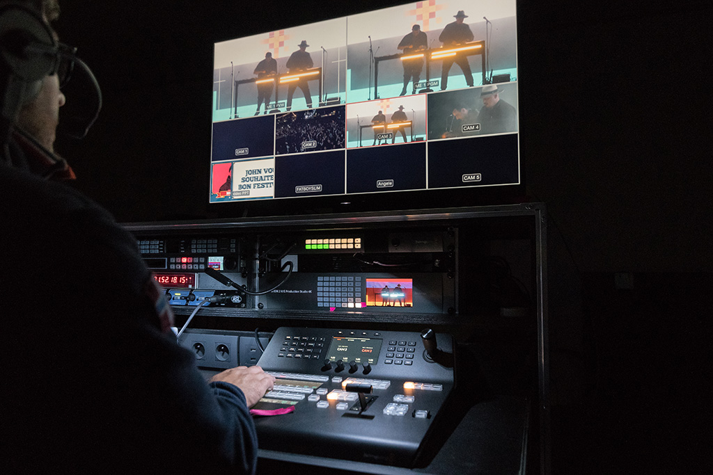 Links und rechts der Bühne waren 5 × 4 m große Videowände aufgestellt. Der Regieraum befand sich 100 m entfernt in einer provisorischen Galerie, wo ein ATEM 2 M/E Production Studio 4K mit einem ATEM 1 M/E Advanced Panel für die Bildmischung bereitstanden. „Wir nahmen für Rückblicke zu Veranstaltungshighlights auch einige Auftritte in der Galerie mit einer Palette von HyperDeck Studio Minis auf“, so Grandin. „Manchmal verlangte jemand dann aber bloß eine direkte ISO-Aufzeichnung von der Kran-Kamera. Dank des integrierten SDHC-Slots waren wir in der Lage, solchen Bitten nachzukommen.“
