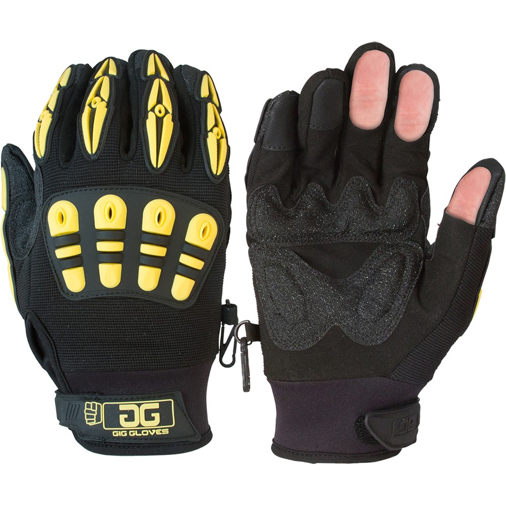 Gig Gear Classic Gloves sind mit Elementen in gelber Signalfarbe ausgeführt, um die Sicht auf die Hände und Finger zu gewährleisten. Gig Gear Onyx Gloves sind für maximale Diskretion komplett schwarz gehalten.
