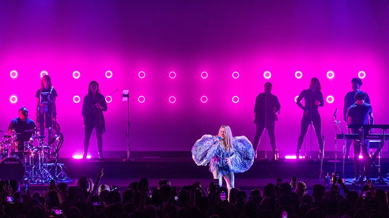 Als Ellie Goulding für diesen Herbst eine kleine Tournee mit sechs Terminen ankündigte, um ihr aktuelles Album „Brightest Blue“ zu promoten, begann die langjährige Lichtdesignerin der Künstlerin, Cate Carter, mit der Arbeit an einem Design. Dafür nutzte sie Lichtlösungen von GLP.