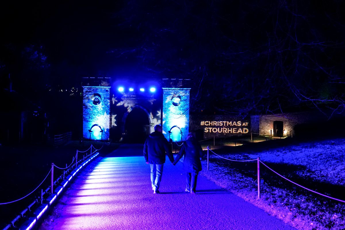 In Stourhead habe Tony Simpson bereits seine fünfte Show in Folge entworfen. Aufgrund der Lage in einem anerkannten „Dark Skies Reserve“ sei jegliches Licht über der horizontalen Ebene hinaus verboten gewesen. Dennoch sei es ihm gelungen, am Ende des Weges, wo ein Tor mit Türmchen den Haupteingang markiere, ein beeindruckendes Design zu realisieren.