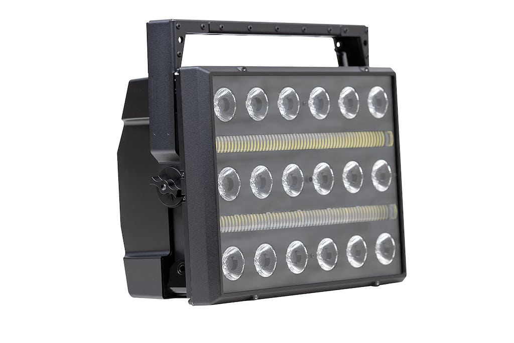 Das neuartige Hybrid-Gerät GLP XDC1 IP Hybrid kombiniert die Wash-Eigenschaften und Farben des Impression X5 mit zwei dem JDC1 entliehenen, Strobe-Linien in einem IP65-zertifizierten Gehäuse. Der GLP XDC1 IP Hybrid kann horizontal und vertikal ausgerichtet und mit weiteren Geräten zu Säulen oder Linien kombiniert werden.