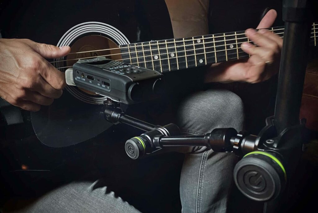 Der VARI-Arm L38 kann in verschiedenen Situationen eingesetzt werden, z. B. als einsatzbereiter Mikrofonarm zur Befestigung an Schreibtischen, Mikrofonständern oder anderen Oberflächen. Der VARI-Arm L38 verfügt über die gleiche Gewinde- und Klammerausstattung wie der VARI-Arm M38, bietet jedoch eine erweiterte Armlänge von 415 mm im Vergleich zu 270 mm. Dadurch eigne er sich besonders gut für die Ausrichtung von Mikrofonen vor Instrumenten.