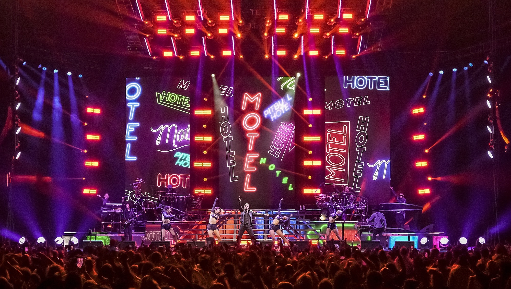 Das in Florida ansässige Unternehmen YC3 Lighting Design unterstützte Pitbull bei der Tournee und lieferte die Leitung, das Produktionsdesign sowie das Licht- und Videodesign.