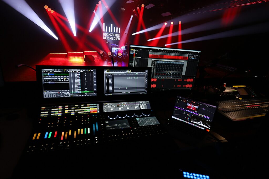 Mit den neuen grandMA3 Konsolen von MA Lighting würden sich bezüglich der Lichtgestaltung von Bühnenräumen neue Designansätze und Produktionsmöglichkeiten für die Studierenden ergeben. „Die markante Änderung im Look heutiger Fernsehshows vollzog sich hauptsächlich auf der lichtgrafischen Ebene. Der Horizont ist heute nicht mehr nur ein diffuser Abschluss des Studioraums, sondern stellt einen wichtigen Teil des Set-Designs dar“, stellt Matthias Bürgel fest. Das Bespielen von LED-Wänden mit abstrakten Farbmustern, Grafik- und Videoinhalten gehöre heute zum Standard moderner Fernseh- und Musikshows, ebenso das kreative Spiel mit bewegtem und farbigem Licht, so Bürgel.